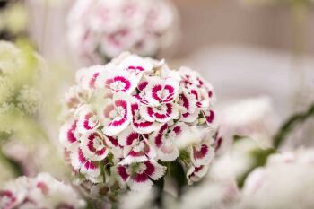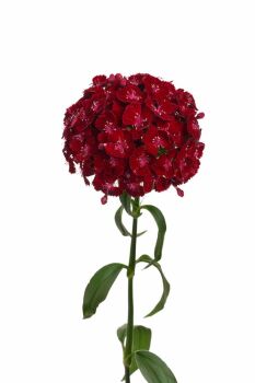 Nemesis is an impressive Dianthus with large, ball-shaped flowers and a remarkable uniform growth. The blooms combine bright white with deep burgundy in a pattern that resembles sunrays. A unique appearance that brings light and contrast to any bouquet.