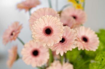 Ribbon charms with its soft pink petals and striking dark centre, giving the flowers a unique, expressive look. With its exceptional vase life and extra firm petals, this variety is both elegant and long-lasting.